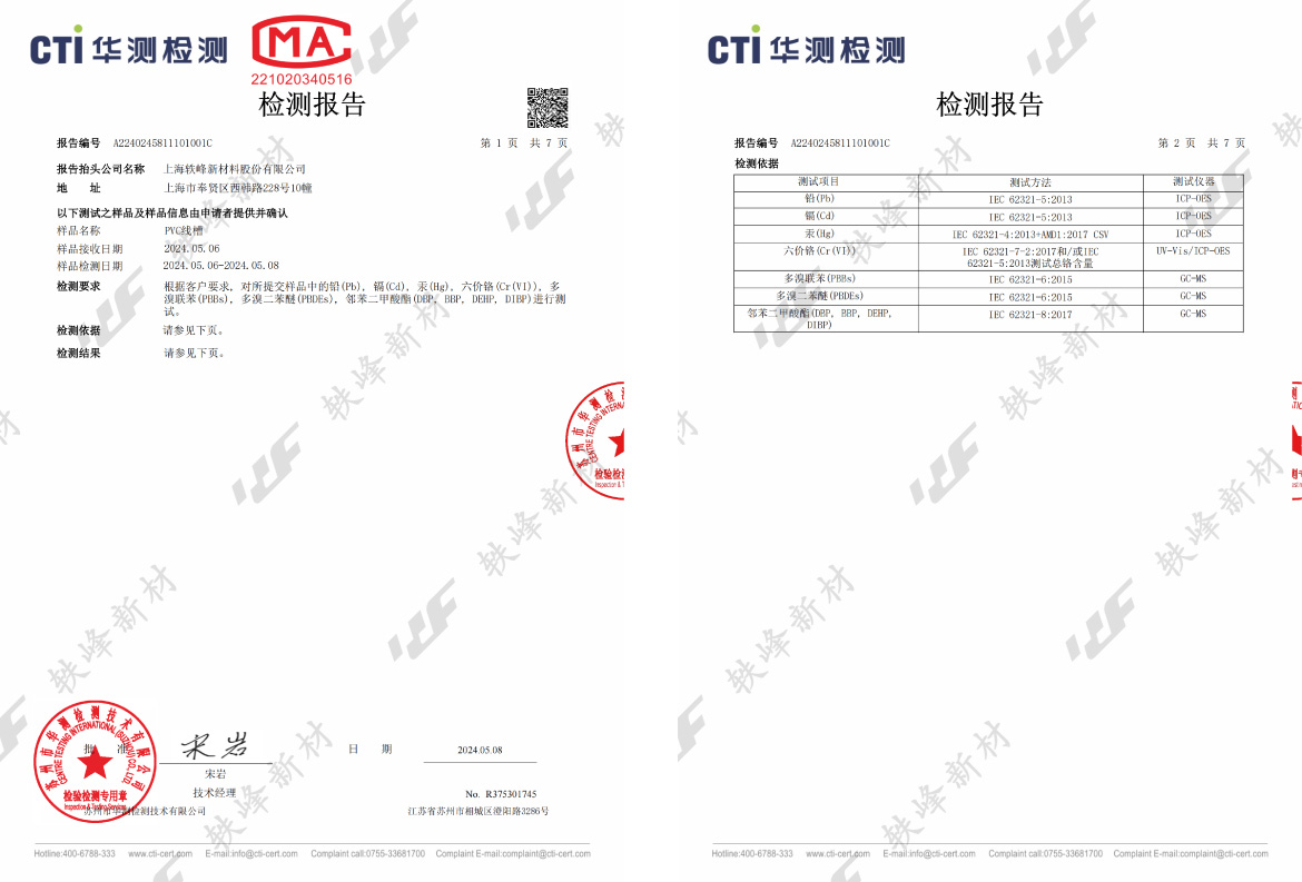 PVC线槽灰蓝色ROHS报告